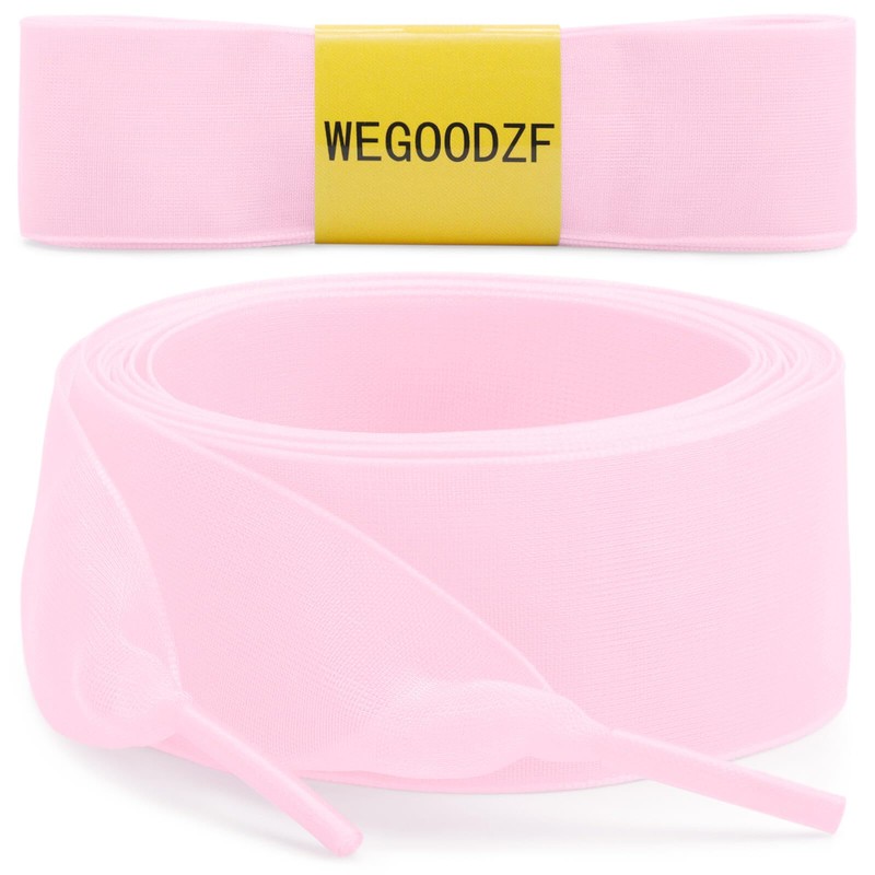 WEGOODZF Flat Snow Yarn Shoelaces: 2.5CM Wide 63 inch Light Pink Fashion Sheer Tulle Shoelaces 2 Pairs