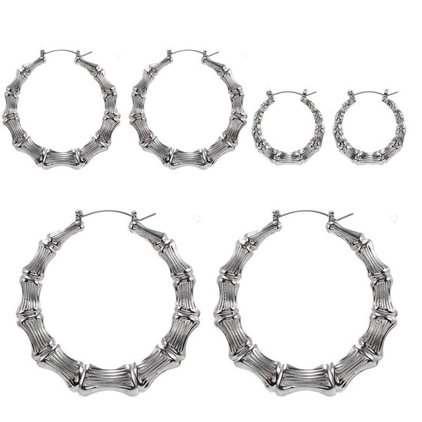 Weicam Women Simple Hip Hop Punk Bamboo Earrings Stud Earrings 3 set (Silver)