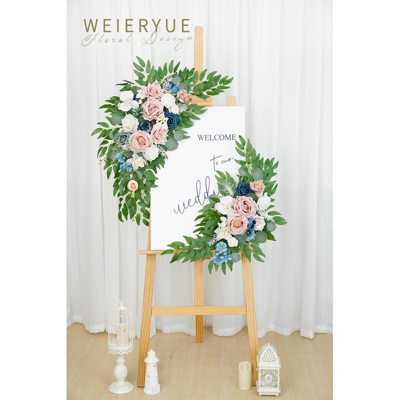 WEIERYUE Artificial Wedding Arch Flowers Kit(Pack of 2) for Wedding Arch, Bridal Shower, Ceremony and Reception Backdrop Decoration (Misty Rose and Navy Blue)