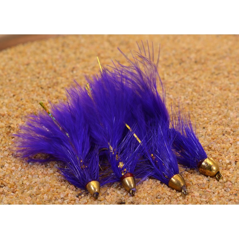 Weighted Cone Head Woolly Bugger Purple Streamer Fly w/Gold Flash Tied on Mustad Signature Hooks - 12 Flies (Hook #6)