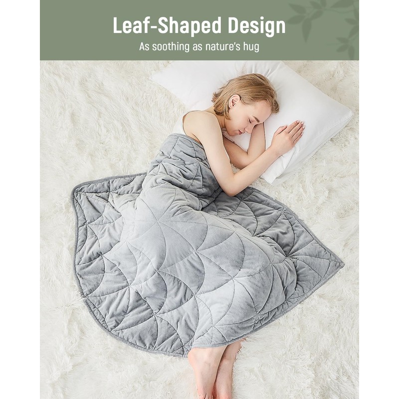 - Chic Leaf-Shaped Design: With its unique leaf-inspired design, this compact weighted throw blanket isn't just functional; it's a visual delight for enhancing any sofa, couch, or bed. The small, well-distributed weight pockets provide comprehensive comfort, mimicking a cozy hug