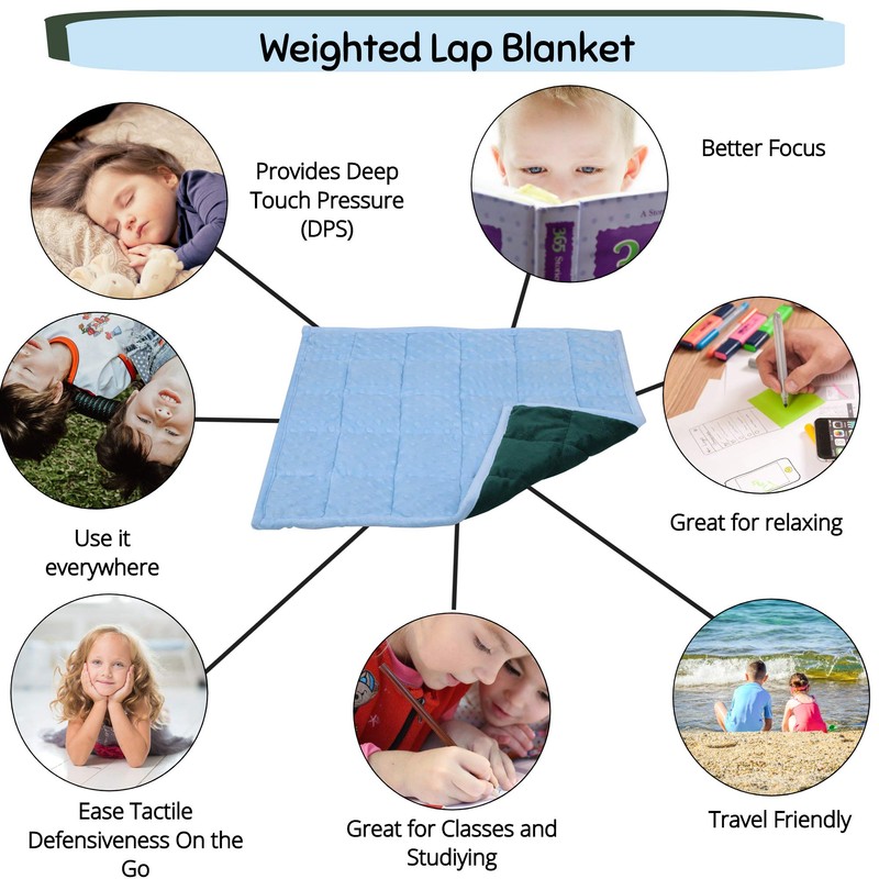 - Attention & Focus - Our lap weighted blanket for kids will help children improve performance by providing a sensory input to allow the brain to focus during classes or traveling; Our weighted sensory blanket or weighted baby blanket is useful for children and those who struggle sitting still