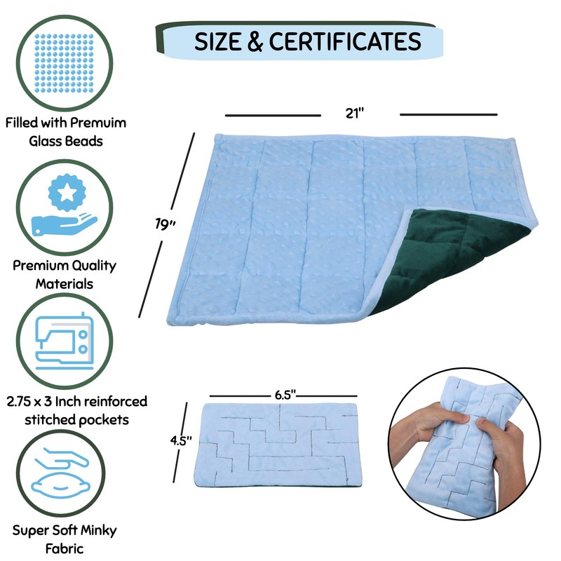 - Premium Quality Design - Our weighted sensory lap pad is made with ultra-soft minky fabric with a textured side for a satisfying touch and double stitched seam for durability; Safety is our priority ensuring our sensory lap blanket weighted set is filled with non-toxic pellets and non-irritating stitching