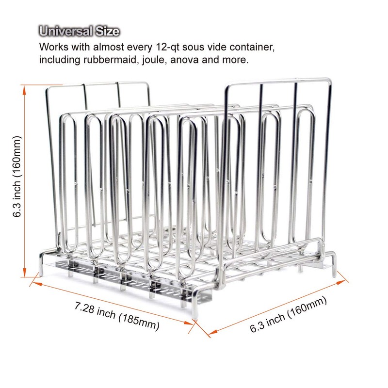 Weighted Stainless Steel Sous Vide Rack Divider 5 Detachable Dividers and 2 Built-in Holder Dividers