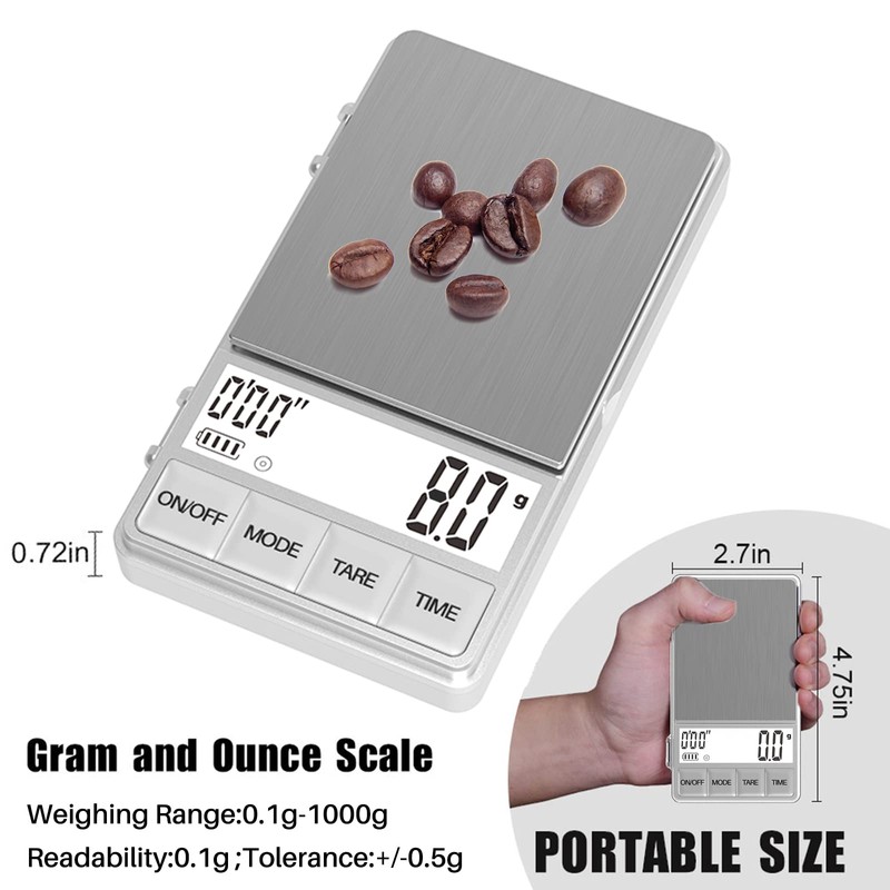 - HIGH PRECISION LOAD CELL: High precision sensor of this coffee scale ensures the accuracy readability of 0.1g increments. Its maximum capacity is 1000g. It's perfect for baking, cooking, food prep, jewelry, and more