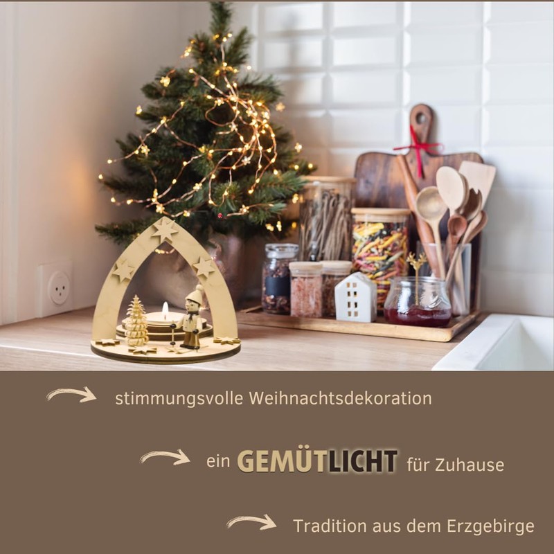 WEIGLA - Teelichthalter original Erzgebirge I Winterkind auf Ski I für 1 Teelicht I Weihnachtsdeko I Teelichthalter aus Holz