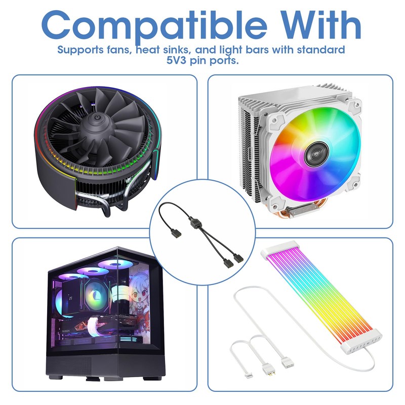 - Excellent Quality: This ARGB splitter cable is made of soft PVC material and tinned copper, with firm sleeves and wrapping, providing long-lasting performance and avoiding dust and damage. Using soft PVC material, Long service time, and after testing, it can be folded 5000 times, with strong durability.