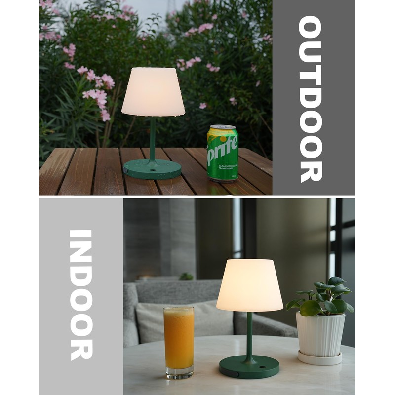 - IP44 Waterproof Certified for Outdoor: Plastic PE lampshade with closed structure, matte powder coated casting aluminum alloy lamp body, strong rubber tap for protecting USB ports, silicone seal mounted under touch switch for preventing water leakage, all above made it a professional outdoor table lamp guarantee full functionality even when it rains. Besides, with 1kg weight it can be tilt proof during a sudden wind, it's the ideal lamp for camping, patio, garden , kitchen, restaurant etc.