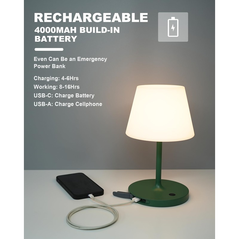 - Portable Cordless Design for Versatility Using: This is a practical LED table lamp with simple modern design. Warm white eye-caring soft light is evenly scattered on the snow white lampshade, creating a comfortable and romantic atmosphere space. With the multifunctional features as portable, waterproof, rechargeable, durable, it's the best table lamp with function and decoration for both indoor and outdoor scenes.