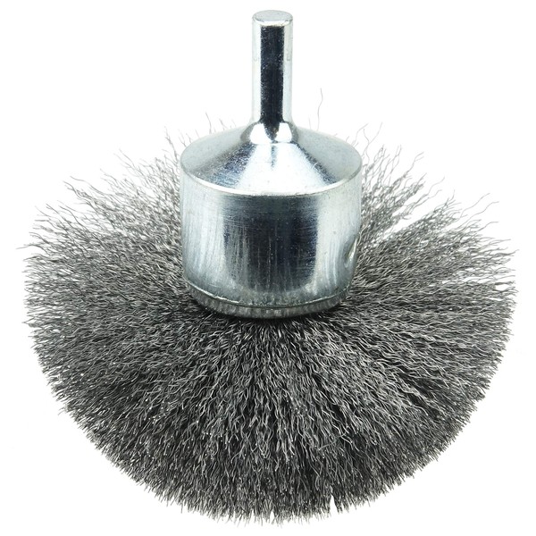 Weiler End Brush, Circular Flared Stem Mount, 3 in Diameter Brush, 1/4 in Shank Diameter, Crimped Filament/Wire Type, 0.008 in Filament/Wire Diameter, Steel Fill, 7/8 in Trim Length, 16000 rpm Maximum, 3-1/8 in Overall Length. Weiler 3" Circular Flared Crimped Wire End Brush features crimped wire fill which has been "pre-flared" to match the working angle of the brush at operating speed and suited for addressing broad and slightly contoured surfaces. 1/4" stem diameter for use on die grinder and right angle die grinders. Wire end brushes are for use on high-speed portable power tools for addressing smaller surfaces and recessed areas. End brushes feature an integral 1/4" steel stem for safe operation at high speed and quick mounting into the collet or chuck of either electric or pneumatic die grinders. At Weiler, we passionately embrace change to improve our products and our processes to move the company and our customers forward. By bringing new ideas and creative problem solving together in an open, collaborative environment, we will improve our customers’ productivity and create profitable growth. Weiler Abrasives is eager to create a collaborative partnership to overcome your toughest cleaning, grinding, cutting, de-burring and finishing challenges. Weiler manufactures precision brushes, abrasives, and maintenance products. The company was founded in 1898 in Germany, is headquartered in Cresco, PA, and is International Organization for Standardization (ISO) 9001 certified.