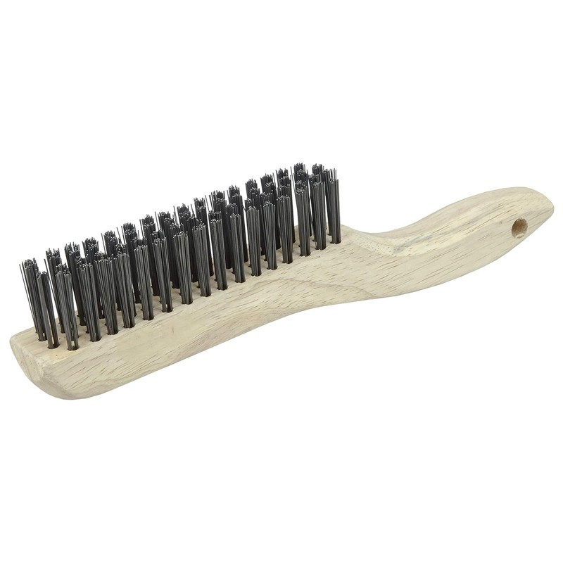 Weiler 44063 0.012" Wire Size, 5" Brush Length, 10" X 1-1/8" Block Size, 4 X 16 No. of Rows, Steel Bristles, Hardwood Block, Shoe Handle Scratch Brush