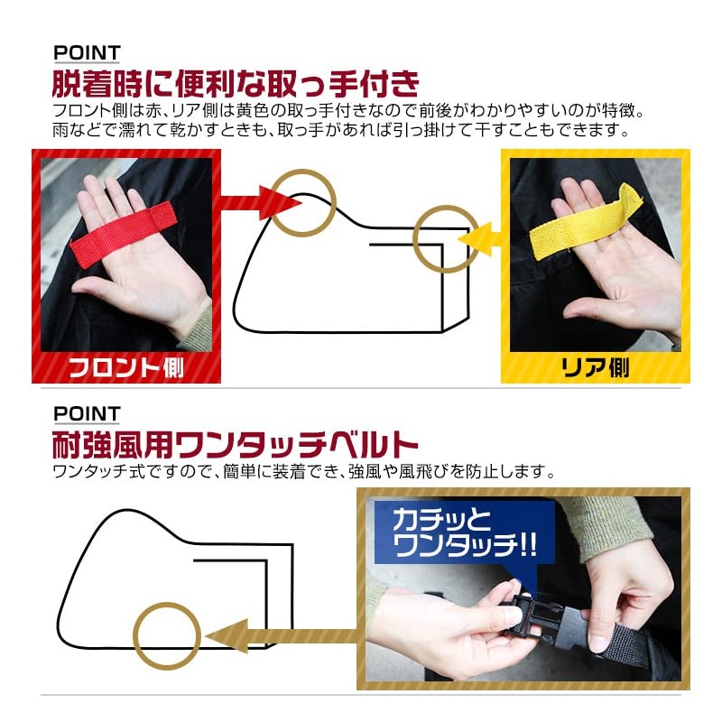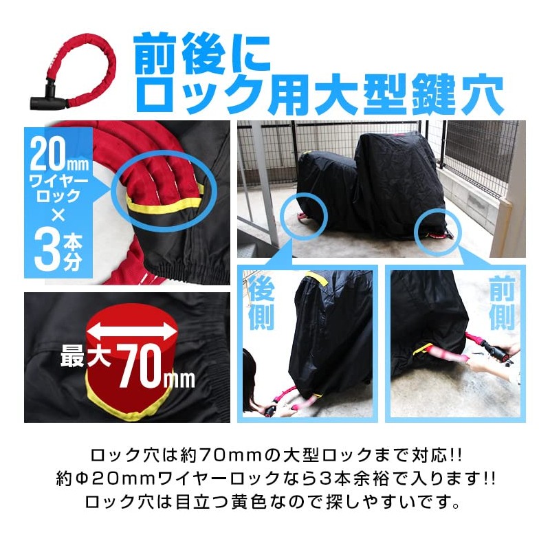 It has a lock hole to prevent theft and a one-touch belt to protect against strong winds.