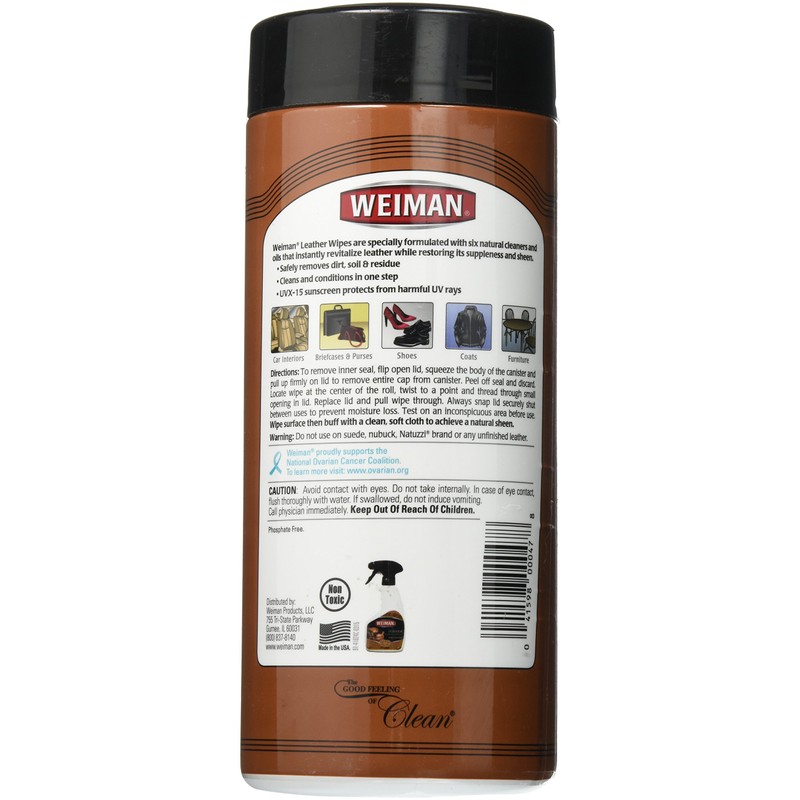 Weiman Leather Wipes - 6 Pack - Clean, Condition, Ultra Violet Protection Help Prevent Cracking or Fading of Leather Furniture, Car Seats and Interior, Shoes
