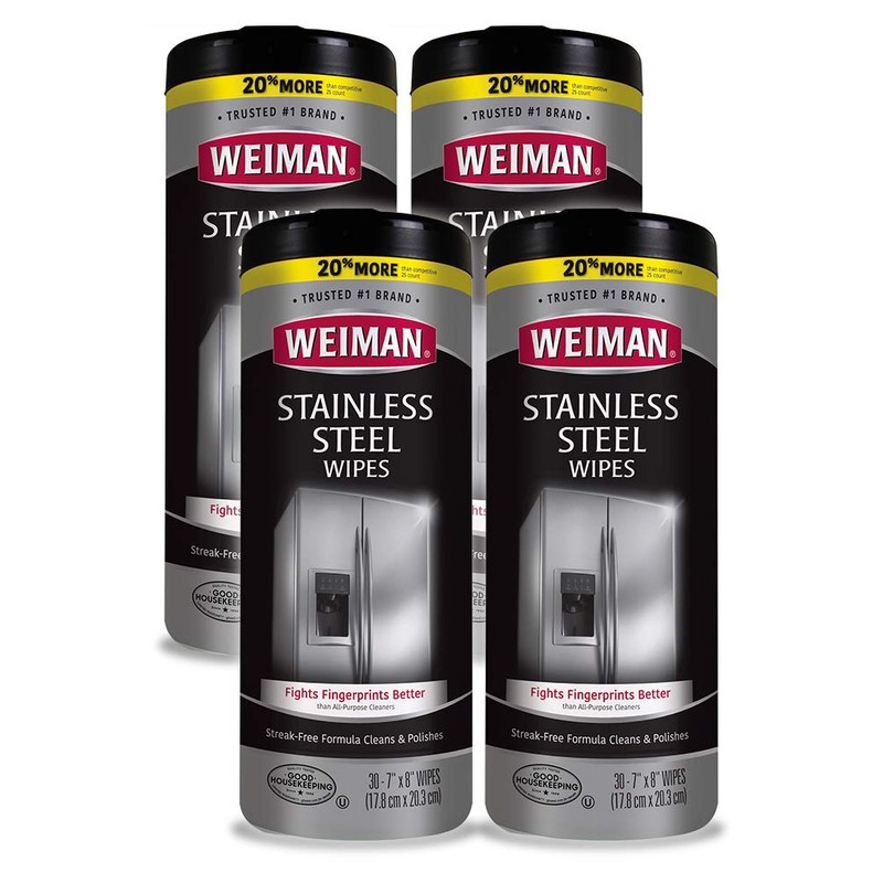 Weiman Stainless Steel Cleaner Wipes (4 Pack) Removes Fingerprints, Residue, Water Marks and Grease from Appliances - Works Great on Refrigerators, Dishwashers, Ovens, and Grills