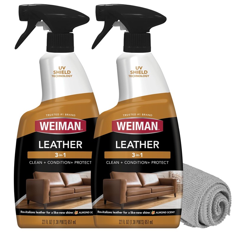 Weiman Leather Cleaner Conditioner & Protector for Couches, Boots, Chairs, Bags, Purses & Auto Interior with Microfiber Towel Included (2 Pack)