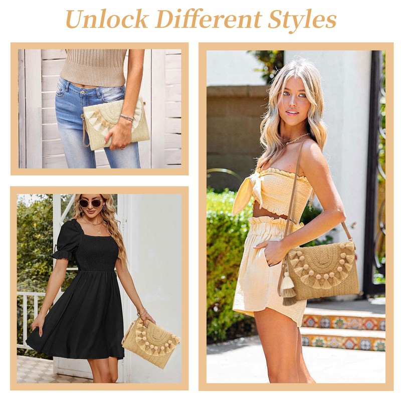 - Versatile Design:This small summer purse for women comes with a detachable and adjustable shoulder strap, , and a wrist strap.Can be used as a wrist straw bag, clutch bag, crossbody bag, offering you versatile options for different occasions.