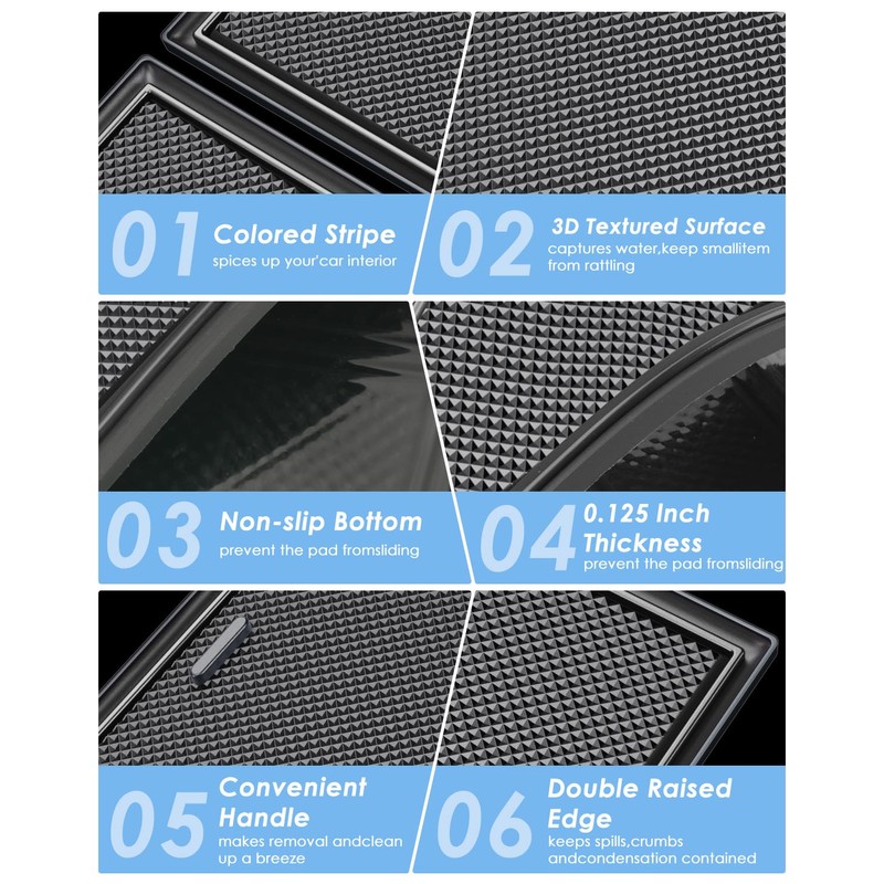 - Premium material: made of soft PVC, environmentally friendly and odourless, water and heat resistant, with a 3D stripping that prevents items from slipping and creating noise while driving.