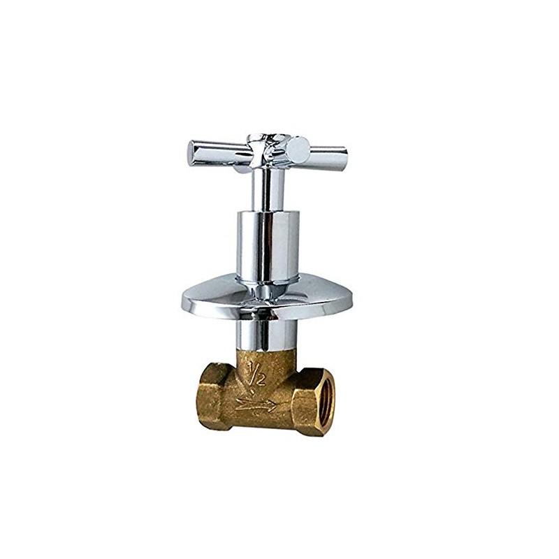Weirun Shower Shut Off Valve,Water Flow Control Valve Straight Replacement Part Concealed with Cross Handle Shut off Valves Water Pressure Regulator,Bathroom Shower Pipe Valve 1Pcs, Chrome