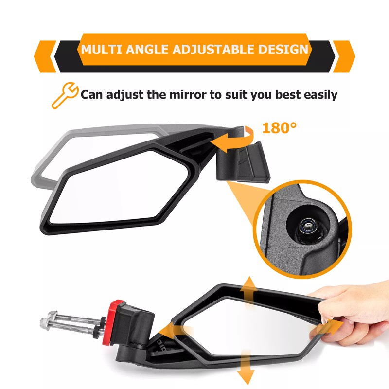 Adjustable Angle: it can make 180° adjustment inward or outward, and the glass can also be adjusted up, down, left, right. The angle of reset also customization, and the driver can choose the right angle according to the actual need