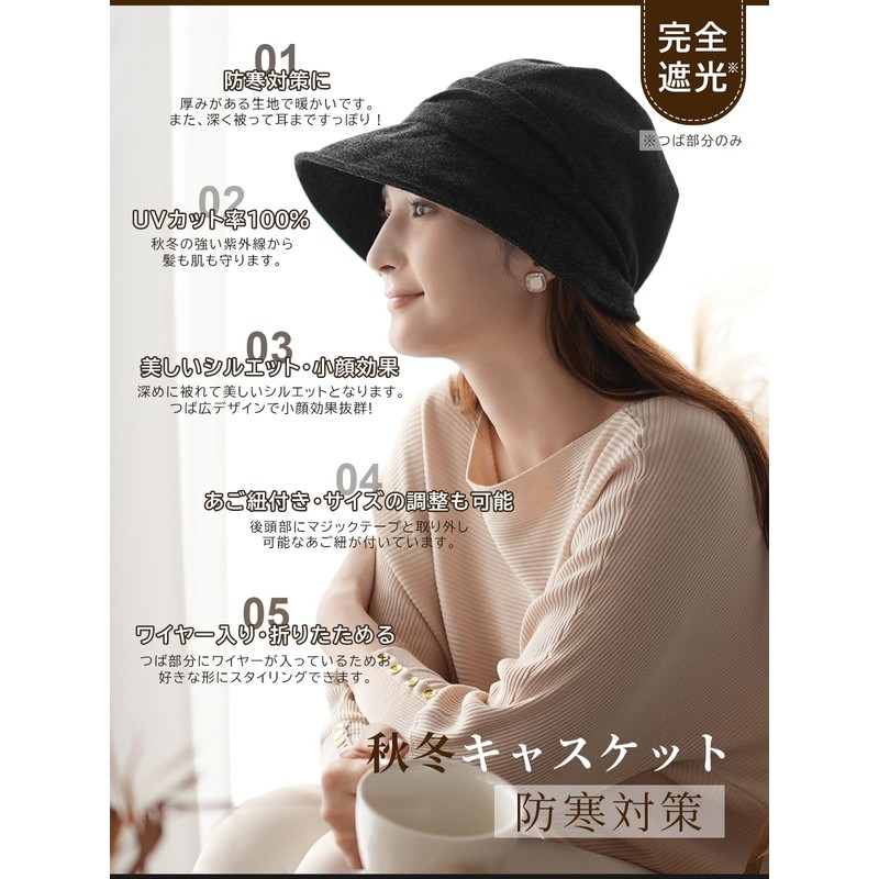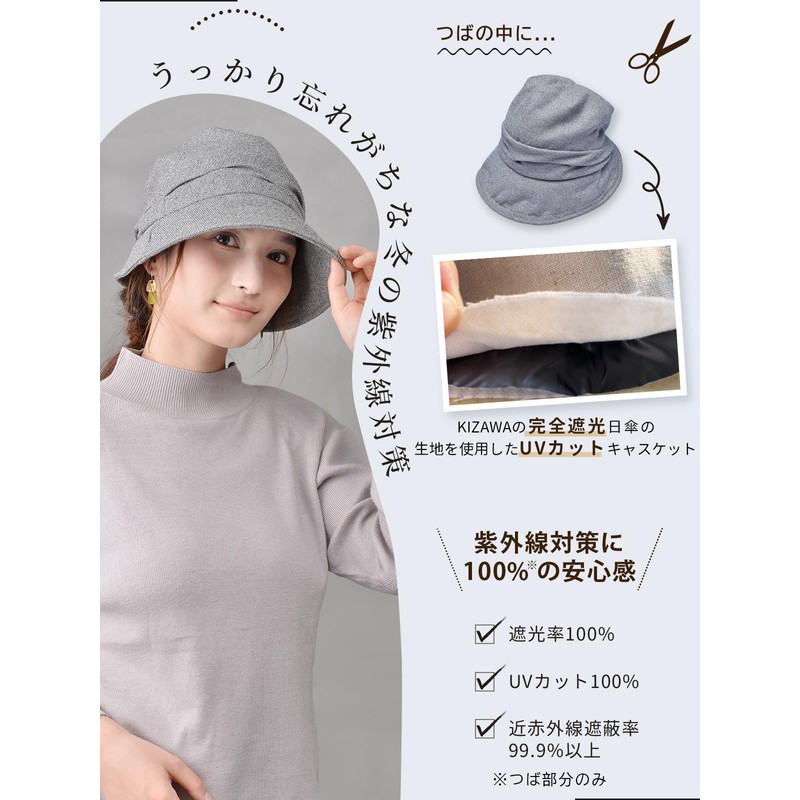 - (Completely Blackout Brim, UV Protection Just Put On) The brim is made of the same material as our completely blackout parasol fabric. When the parasol is unusable, simply put it on to protect against UV rays. Wear this wide brim cap to keep your skin healthy and healthy even in autumn and winter