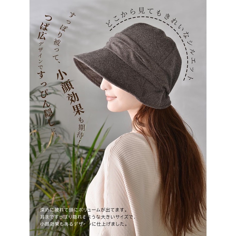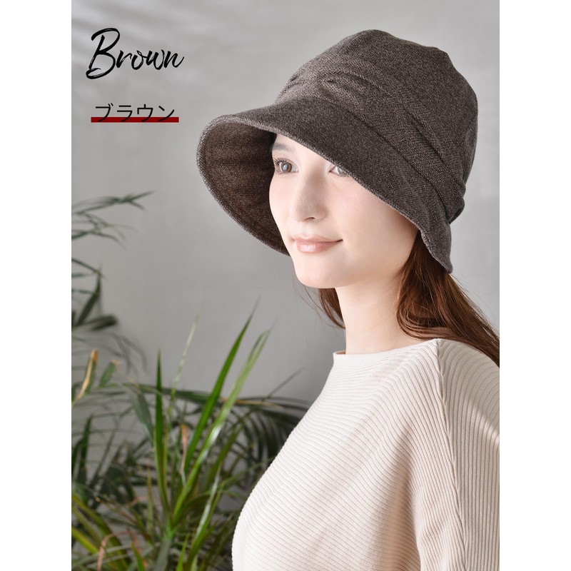 WEISHY Women's Hat, Autumn & Winter, Large Size, Wide Brim, Cold Protection, Full Darkening, Small Face Effect, Warm, UV Protection, Foldable, Stylish, Includes Chin Strap, Braun