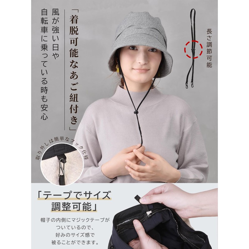 - Chin Strap Included and Adjustable Size: Available in two sizes of FREE, and L. In addition, if the size is big, you can adjust it to about 1.2 inches (3 cm) shorter with the Velcro strap on the back of You can wear it comfortably with your preferred fit. It also comes with a removable chin strap so you don't have to worry about it being blown away by the wind, so you can rest assured that it will be safe when riding a bike or on windy days