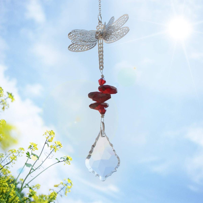 WEISIPU Crystal Suncatcher Prism - Dragonfly Suncatchers for Windows Hanging Rainbow Maker for Windows, Christmas Tree Decor, Gifts (Red)