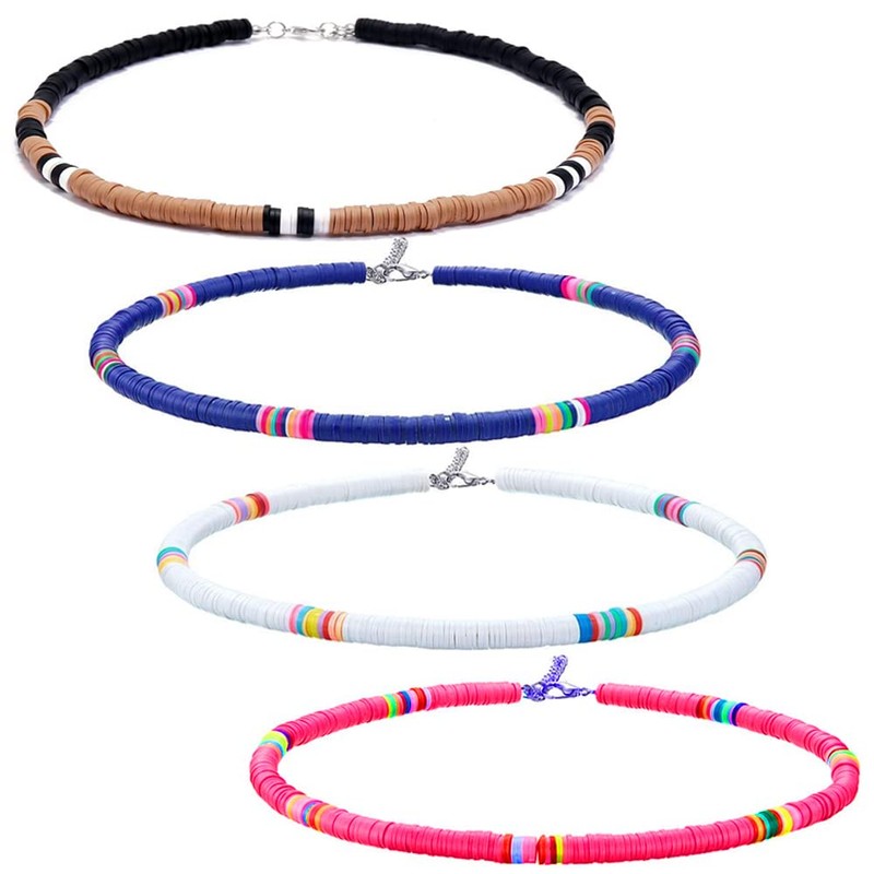 WEIWUXIAN Bohemian Necklace, 4 Pieces Beach Necklace, Surfer Choker, Polymer Clay Choker, Bohemian Pearl Collar Adjustable, Clay Necklace for Women and Girls, Soft ceramic
