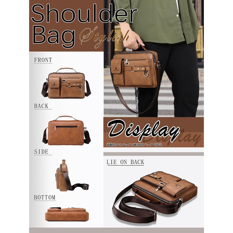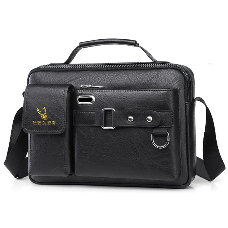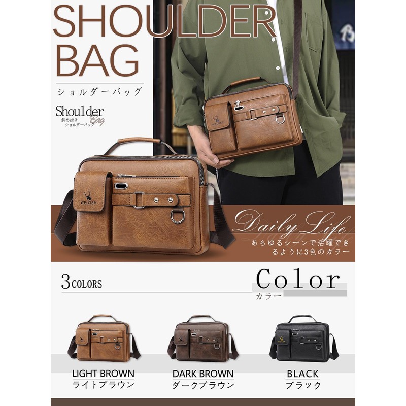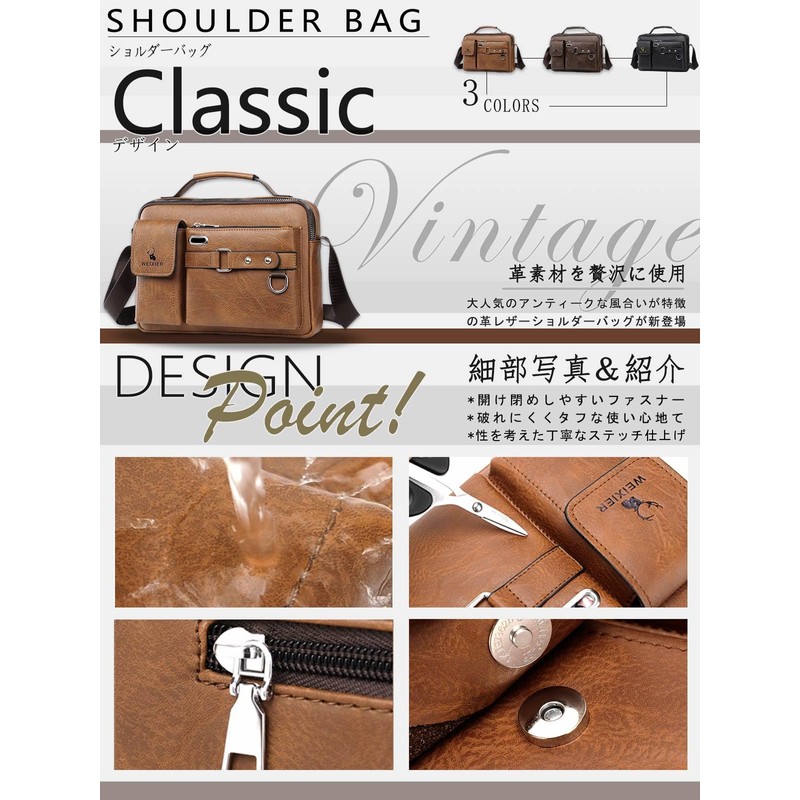 WEIXIER Men's Shoulder Bag, Large Capacity, Smaller, Shoulder Bag, Men's Shoulder Bag, Leather, Crossbody Bag, Men's Bag, Black