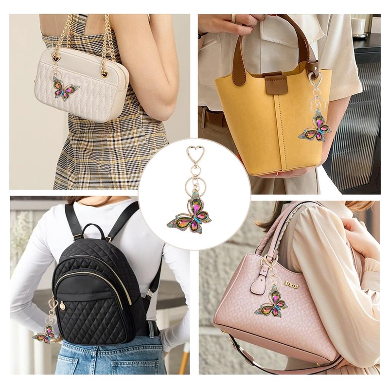 Charming & Trendy Design: A heart-shaped keychain with a diamond butterfly pendant that blends elegance and playfulness. The rhinestone accents add a sparkling, feminine touch to any outfit. Perfect for keychain charms, bag accessories, or purse ornaments.