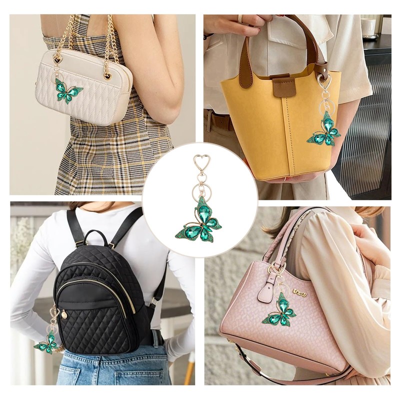 Weixiltc Charm Keychain for Women, Cute Heart Key Chain with Diamond Butterfly Pendant, Lovely Bag & Purse Keyring Accessory (Green)