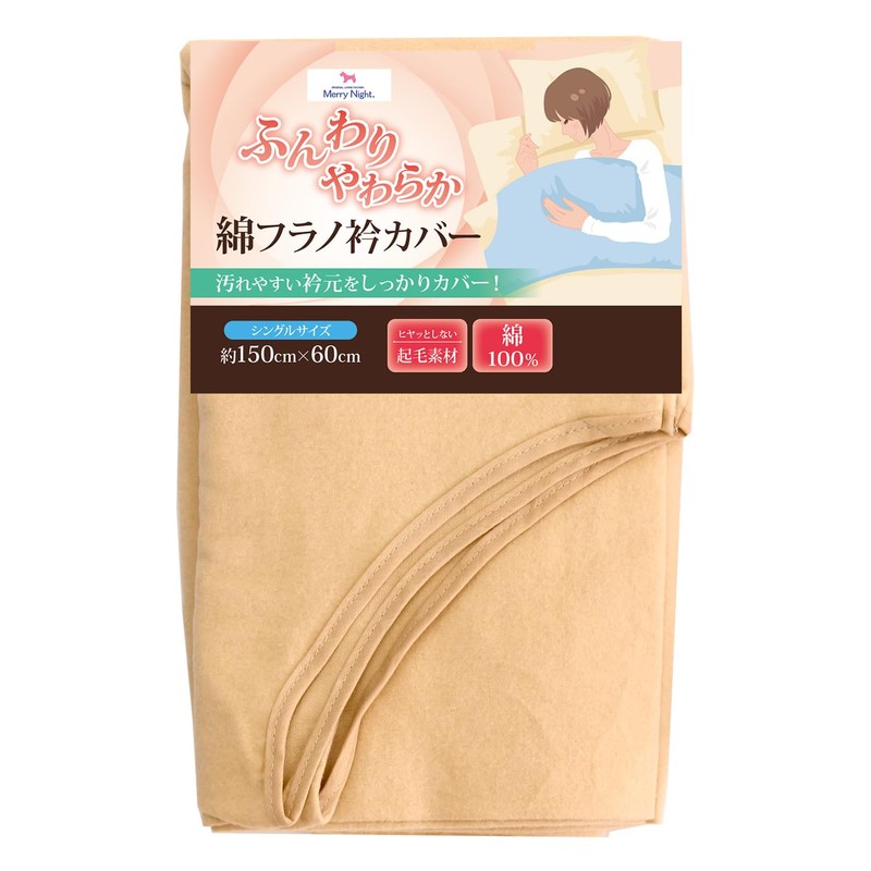WEK99050-96 Merry Night Collar Cover, Brushed Material, Beige, For Single Long, Approx. 59.1 x 23.6 inches (150 x 60 cm), 100% Cotton, Fluffy, Warm, Non-Disguising, Textured, Autumn/Winter Bedding, Easy Installation, Elastic on Both Sides, Non-Slip, Washable