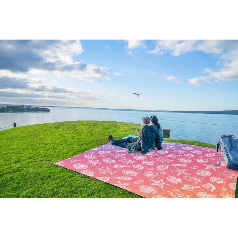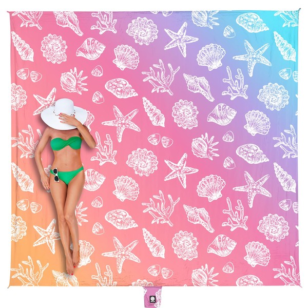 - Oversized & Portable Beach Blanket for All Adventures - Unfold new adventures with this easy-to-pack, large beach blanket—an essential for any outdoor outing! Measuring 11 ft x 9 ft (11" x 9"), it comfortably fits 1-10 adults for picnics, camping, or beach days. The sandproof design stays in place with metal stakes, ensuring stability for a worry-free experience. Plus, the charming sea shell design adds a touch of coastal beauty to your beach trips!