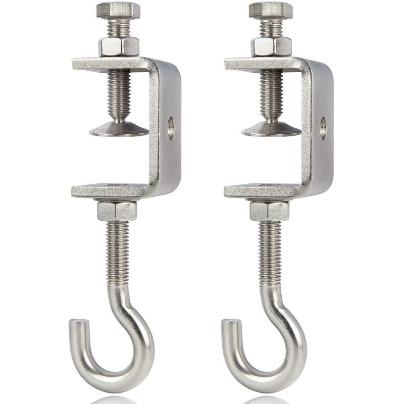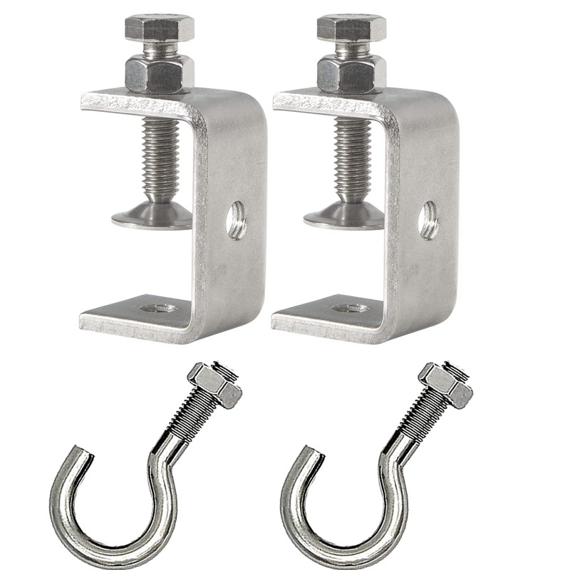 Wekboss Small Stainless Steel C Clamps 1.85 In and Heavy Duty Metal Hanging Bolt Hook/Threaded Screw Hook, With Protective Pad (2 Pcs)