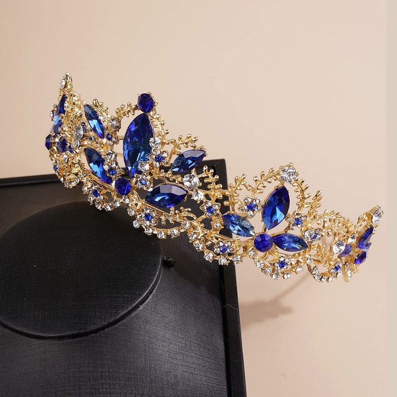 Wekicici Crystal Tiara Crowns Princess Blue Rhinestone Crown with Combs Bridal Headbands Wedding Costume Prom Birthday Birthday Party Hair Accessories for Women Girls(Style 8)