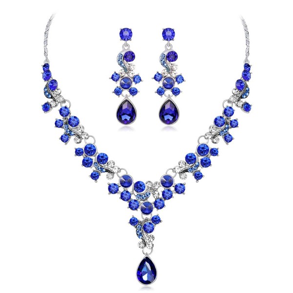 Wekicici Juego de collar y aretes para novia, para mujer, con cristales de boda, múltiples lágrimas, juego de aretes colgantes para mujer (azul)