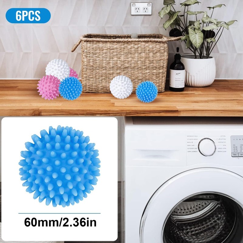 3. You will receive 6 x dry balls, the diameter of the dryer balls is 60 mm, which are small and lightweight and can be easily carried.