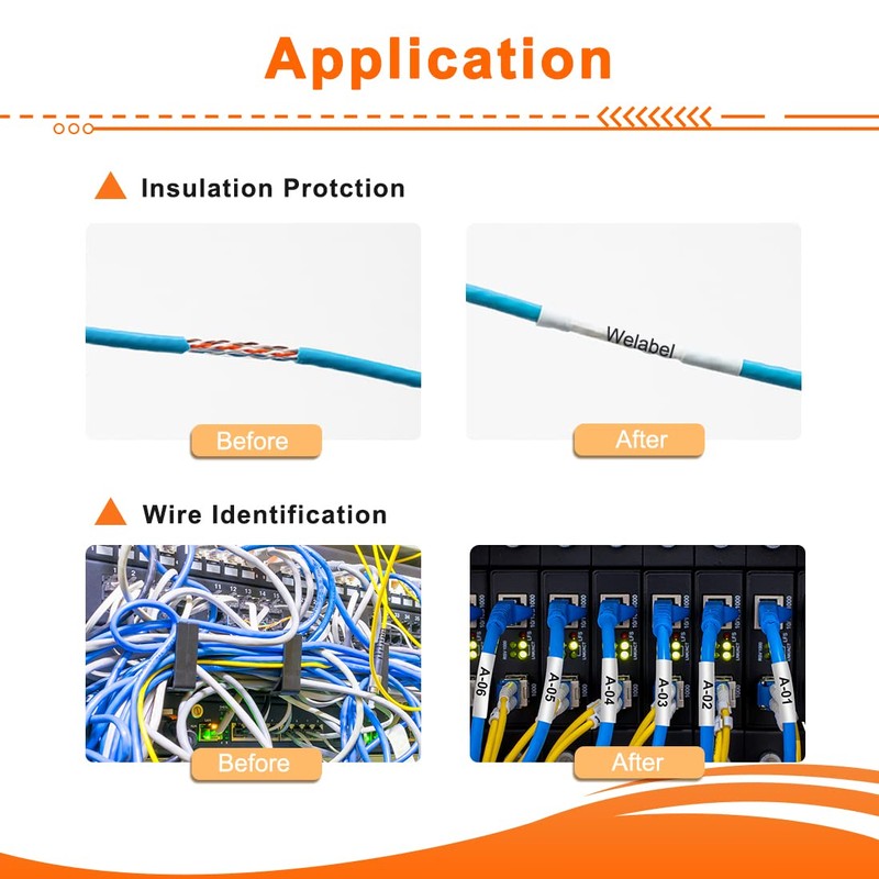 - Application: HSE221 It is not sticky. You can use lighters, hair dryers, hot air guns to shrink it quickly. Easily printable text, ideal for cable identification and classification.