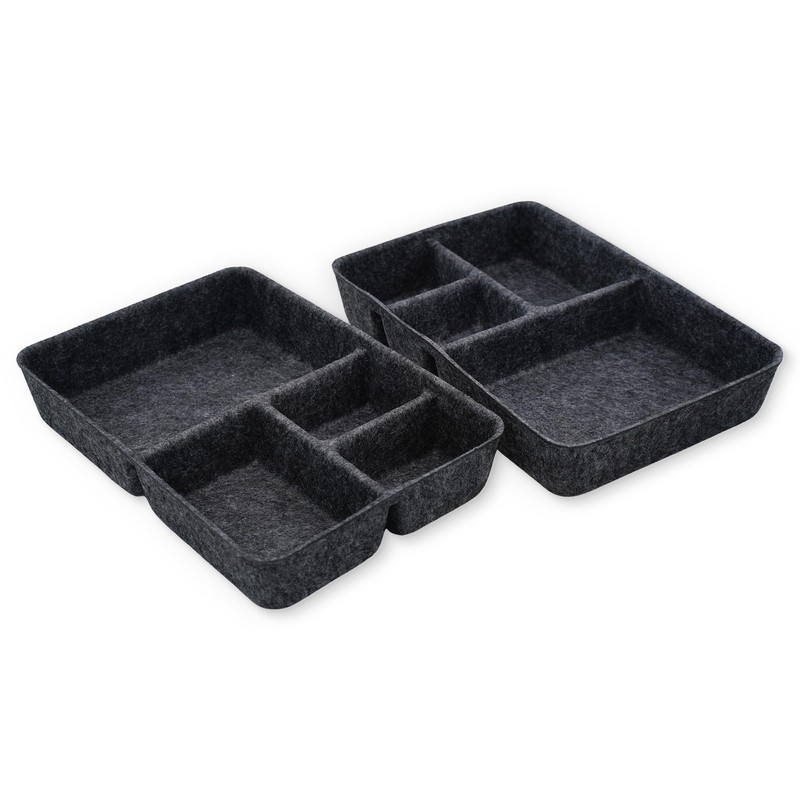 Welaxy 2-piece Junk Drawer Organizer bin 4 Compartments Office home dorm 2 dividers Felt Trays Drawers Multi-Purpose Storage (Charcoal x 2)