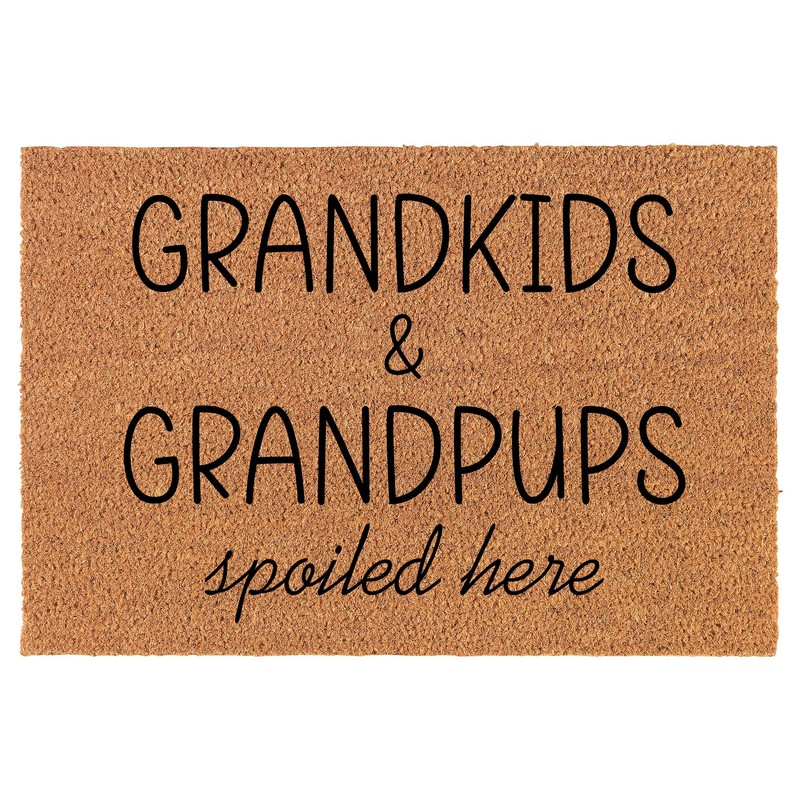 Welcome Doormat Coco Coir Door Mat Gift Grandkids and Grandpups Spoiled Here Grandparent for Grandma Grandpa (30" x 18")