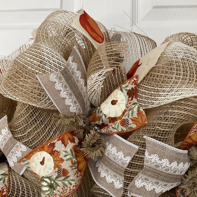 Welcome Harvest Burlap and Lace Wreath Handmade Deco Mesh