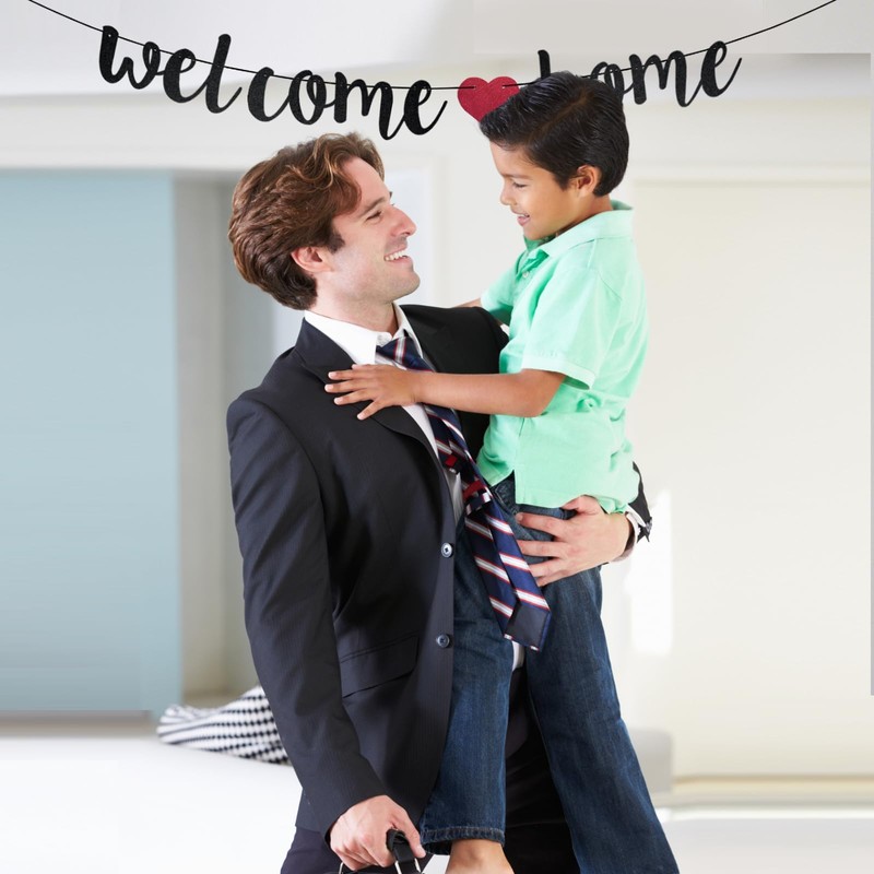 Welcome Home Banner - Black Fully Assembled and Ready to Hang - Glitter Welcome Home Decoration for House Warmth, Military Home Coming