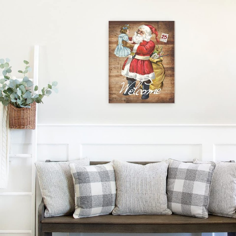 Welcome Santa With Sack Farmhouse Style Wood Wall Decor Sign 16x20