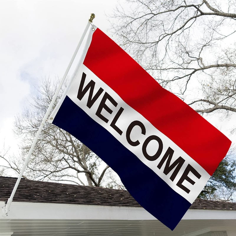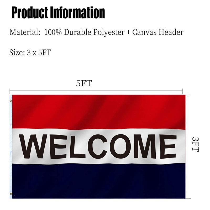 - ❤️[VIVID COLOR & FADE PROOF]-- Our welcome banners are environmental-friendly dyestuff. is rich color and strength, to keep your flags bright colors non fade for a long time