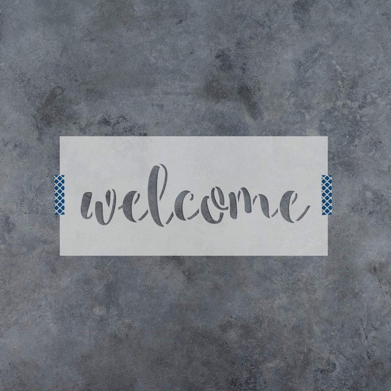 Welcome stencil on reusable 10 mil mylar. Laser cut stencil for crafts and DIY projects. All of our stencils are cut right in the USA and shipped out in 1 business day. We use a thick mylar which will last for hundreds of uses when cleaned and stored properly.