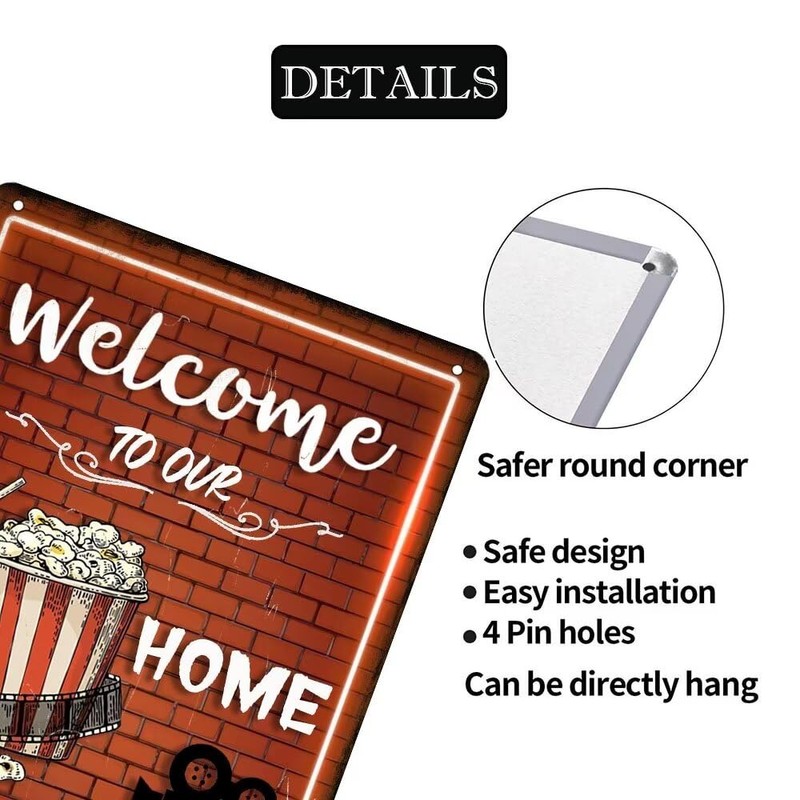 Welcome to Our Home Theater Metal Tin Sign, Retro Small Theater Art Sign For The Movie Theater Media Room Bar Cafes Wall Decoration Accessories 8x12 Inch