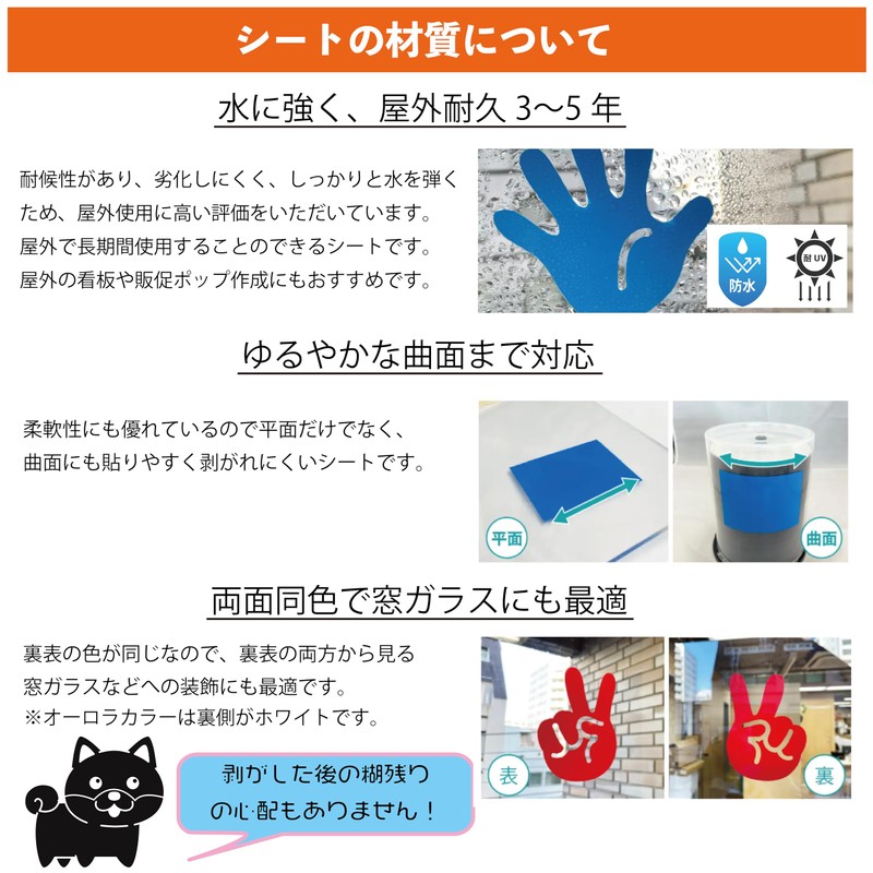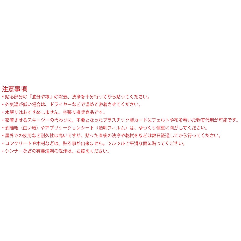 [Features] PVC (vinyl chloride) glossy. Outdoor 3.4 years. Weather resistant, waterproofing. Supports gentle 2 o'clock curves. [Thiness] 0.080 mm [Heat resistance] 144°F to 176°F (60°C to 80°C); [Usable items] Motorcycles, cars, boats, boards (surfboards, snowboards), iron plates, acrylic plates, window glass, plastic, phone cases, and small items.