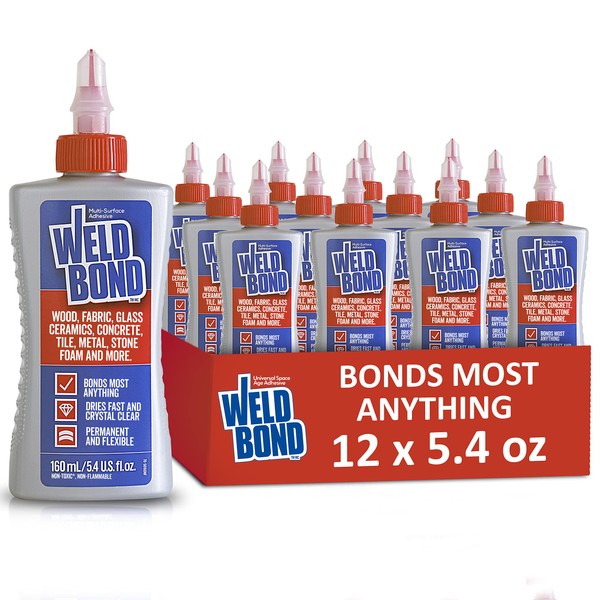 Weldbond Multi-Surface Adhesive Glue, Bonds Most Anything! Wood Glue for Furniture or Carpentry Fabric Glass Mosaic Ceramic Jewelry Stone & More. Non-Toxic, Dries Crystal Clear. 5.4oz /160ml 12-Pack