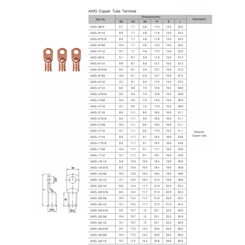 Welding Copper Cable Lugs 4 AWG Cable 3/8" Stud Eyelet Lug,5 Pack