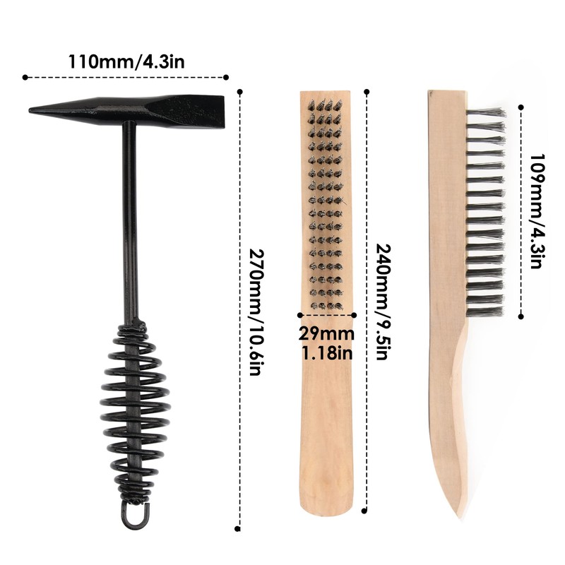 - Package: 2pcs*Wire brush+ 1pcs Slag chipping hammer